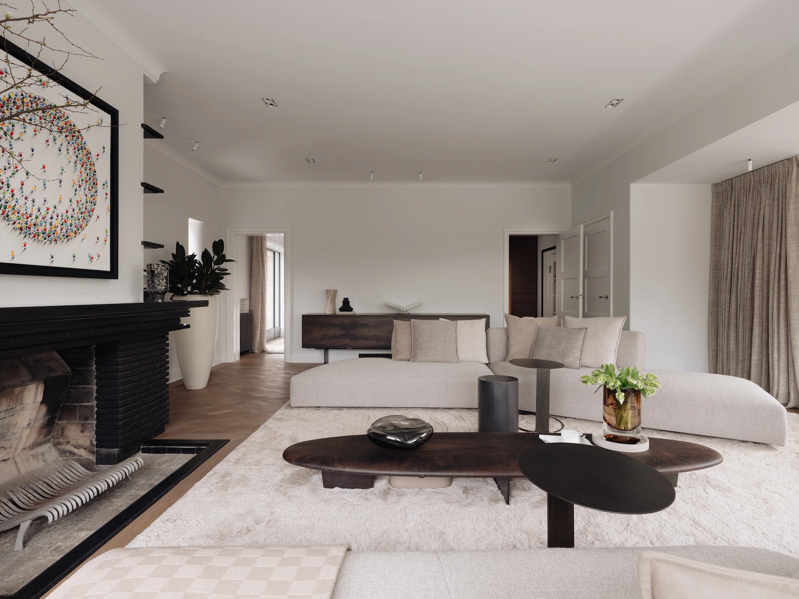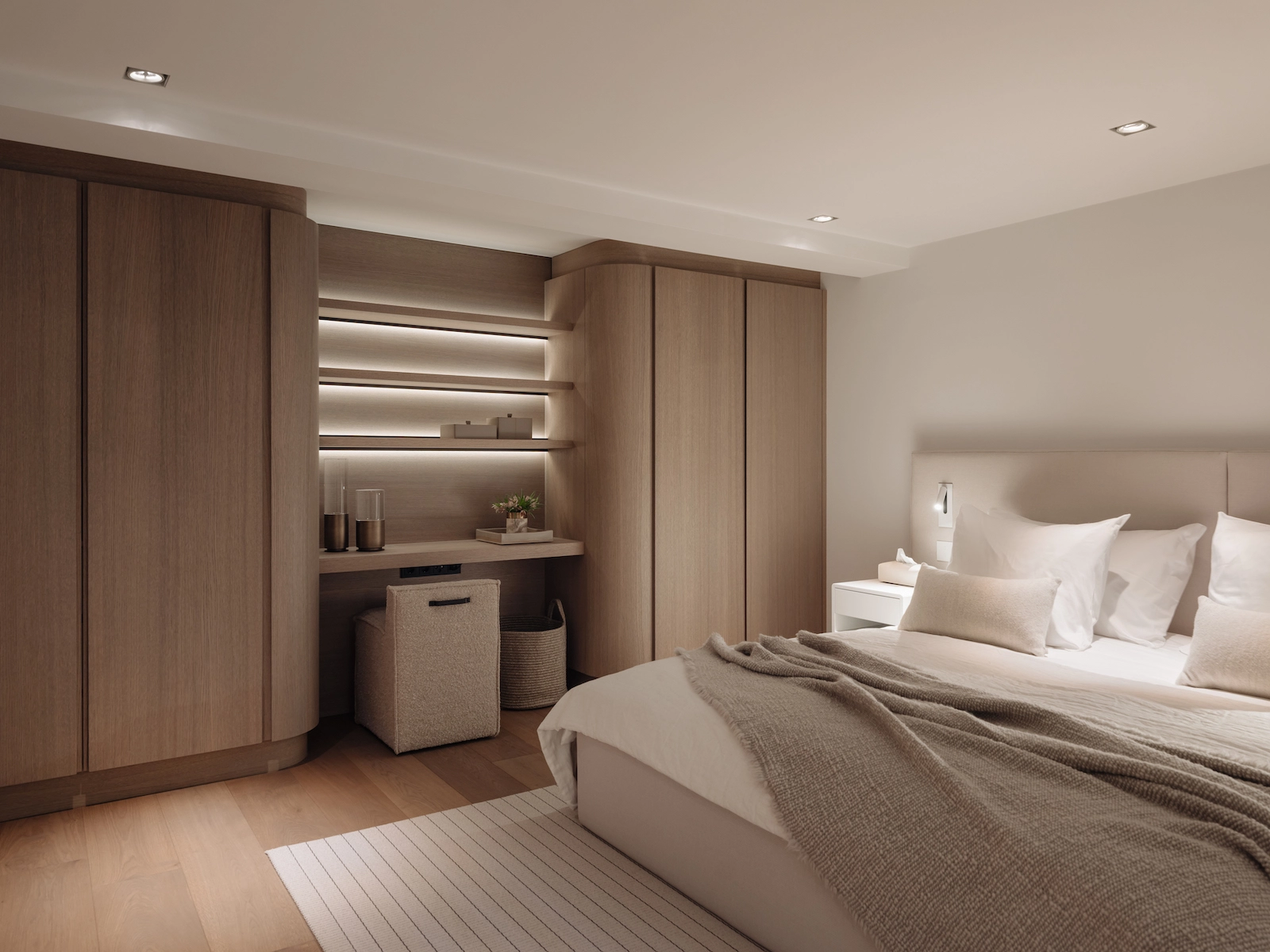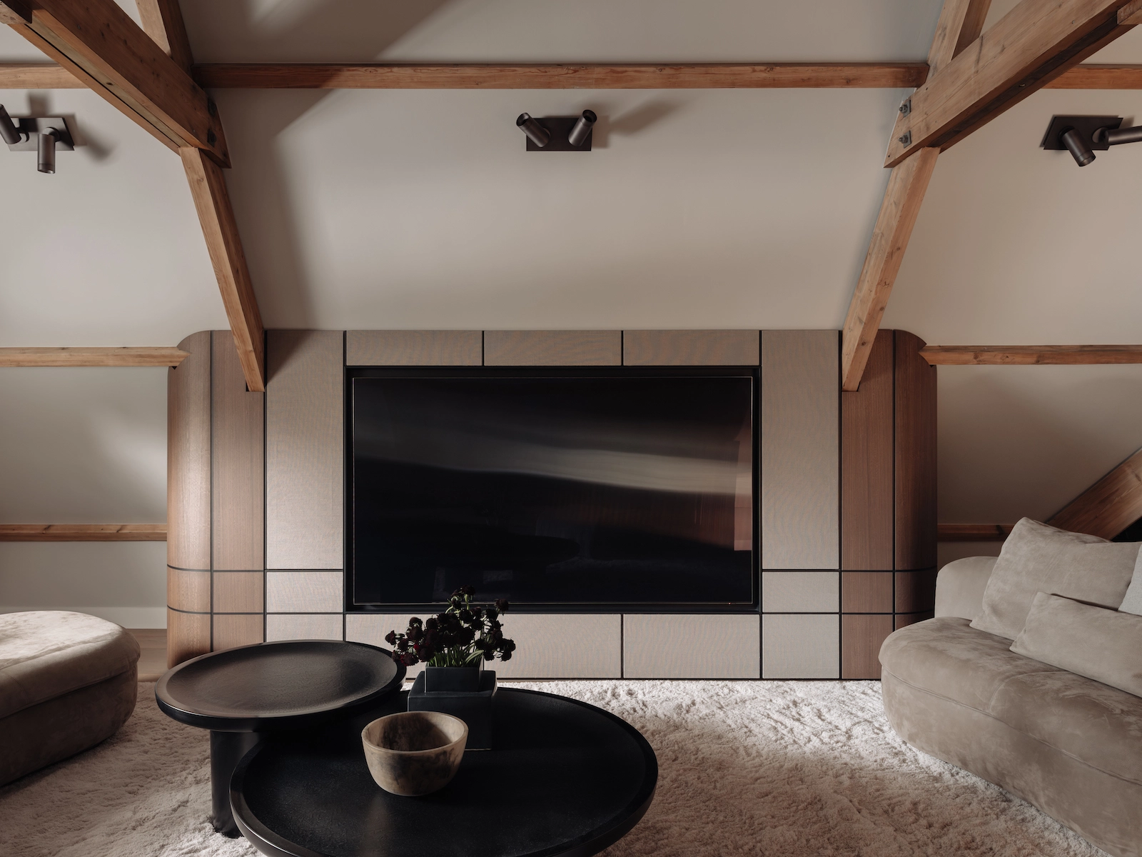 Door de gehele woning zijn meerdere audiozones gerealiseerd met Wisdom Audio luidsprekers en inbouwsubwoofers, aangevuld met Sonance in-stuc luidsprekers in geselecteerde ruimtes. Televisies zijn subtiel opgenomen in het maatwerk interieur, zonder afbreuk te doen aan de architectuur. Verlichting en klimaatregeling zijn uitgevoerd met Lutron en KNX, inclusief integraties met het alarmsysteem. De bediening is centraal, intuïtief en elegant vormgegeven via Savant.